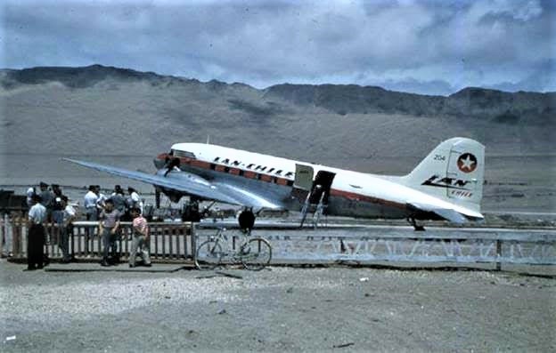 Fotografía: Aeropuerto Cavancha ( A don Sergio le merece duda que la foto realmente corresponda a Cavancha (“los cerros son muy bajos y muy cerca de la pista…”).